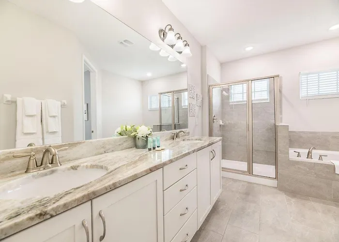 Die 5-Zimmer- Sophisticated 6 Bdrm Villa With Movie Room At Encore Orlando bietet die Nähe zu nahe gelegenen Sehenswürdigkeiten wie dem ESPN Wide World of Sports (liegt rund 7 Kilometer von der Unterkunft entfernt).